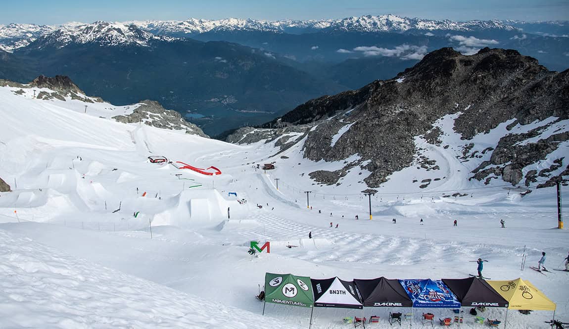 Our private summer park is located on the highest part of the glacier, offering the best snow conditions and the largest, most diverse terrain park, including a variety of rails & jumps to suit all levels, two giant airbags, mogul course and a private T-Bar located right alongside our lane, guaranteeing you the fastest lap times and the most mileage!