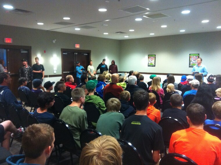 Then were off the the welcome meeting. We’re they were introduced by Mike Riddle, TJ Schiller, Alexis Godbout, James ‘Woodsy’ Woods at the UK halfpipe team, Mike Henitiuk, Josh Bibby, Sarah Hogg, Andrew Clough, Tami Bradley, Chris Wong, Ken Rodes, plus many more!