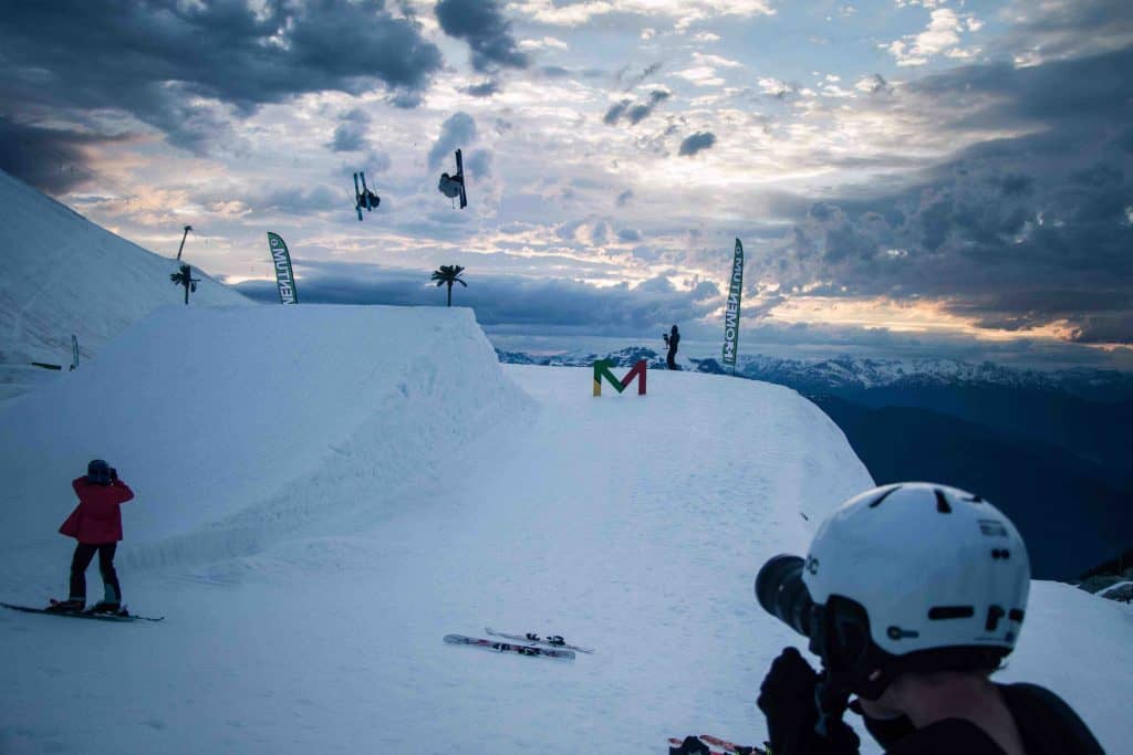 Alongside Exposure Camp was our annual Sunset Shoot. This was organised to give Exposure campers the chance to experience a professionally set up shoot, with the best of the best in snowsports athletes as their subjects. After chilling on the deck of the Horstman Hut in the afternoon sun, the crew headed back into a freshly groomed lane and began sessioning the bumps line and park. Sunset was a moody affair with fiery skies, complex clouds and diffused light. Skiers and snowboarders threw down and the shots captured were magnificent.