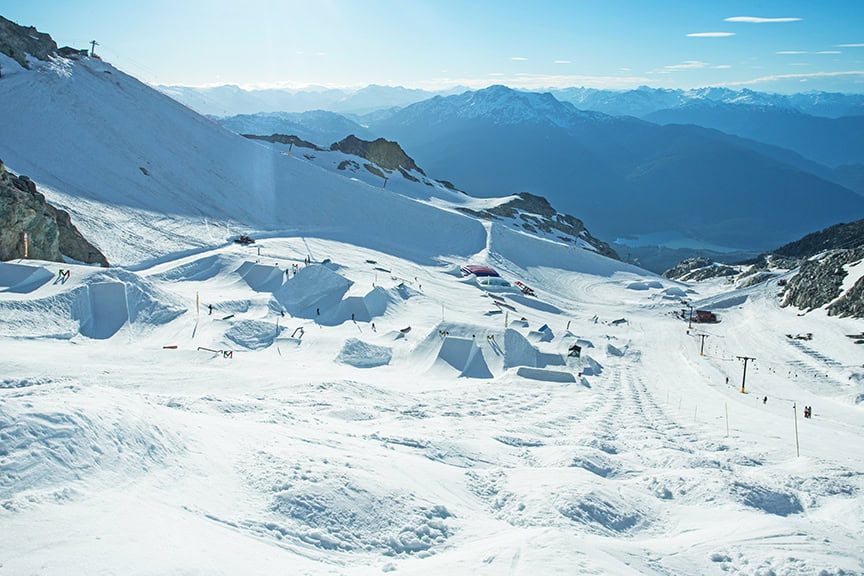7000 feet above sea level on the Horstman Glacier, there exists a world like no other. Here lies an exclusive ski park where you can hotlap on a private T-Bar with some of the best skiers in the world as your coaches. Shred soft bumps, fly off perfectly manicured jumps and reach those goals and dreams you never thought you still could – spins, flips or just a sweet top to bottom mogul run.
